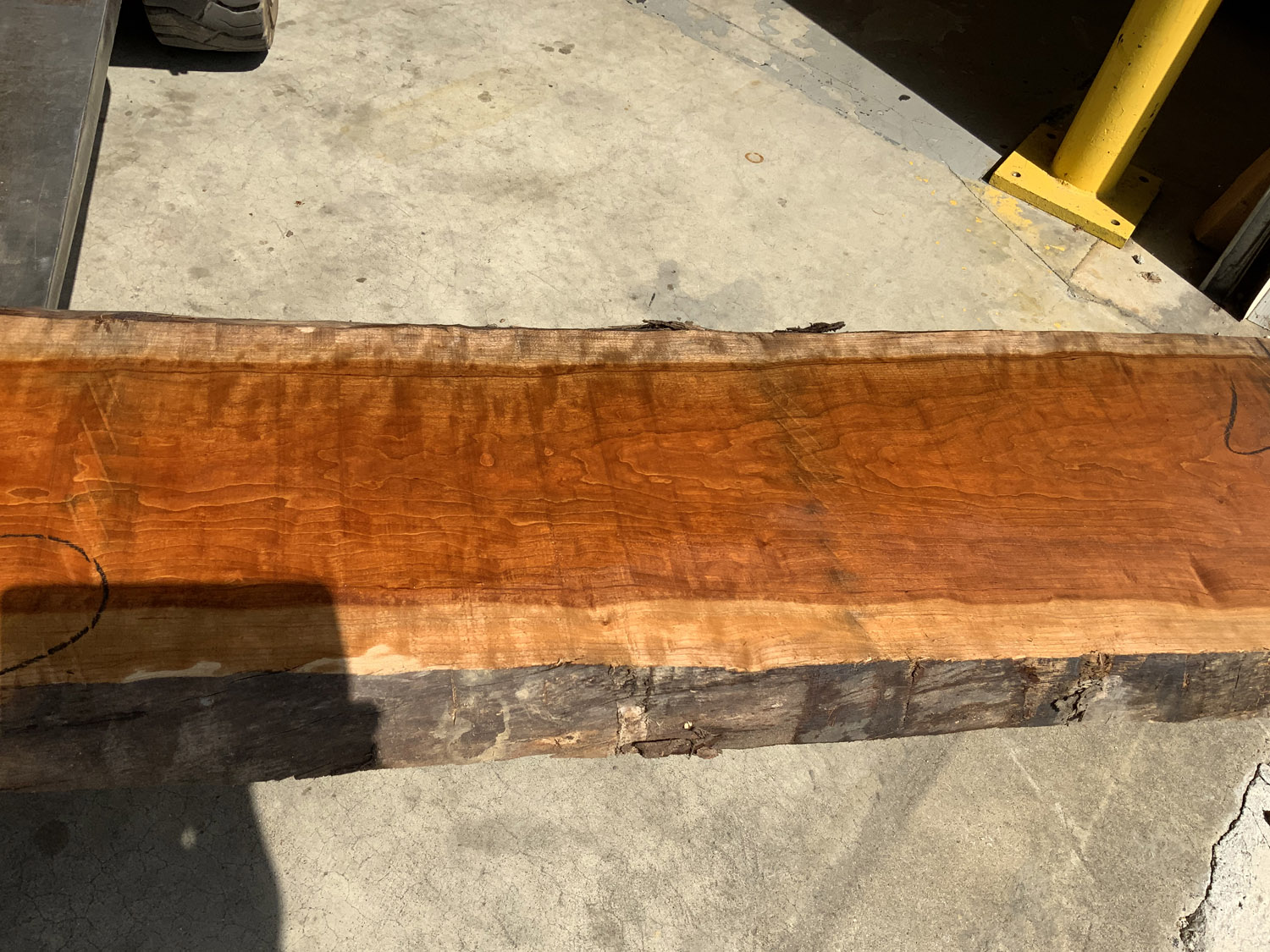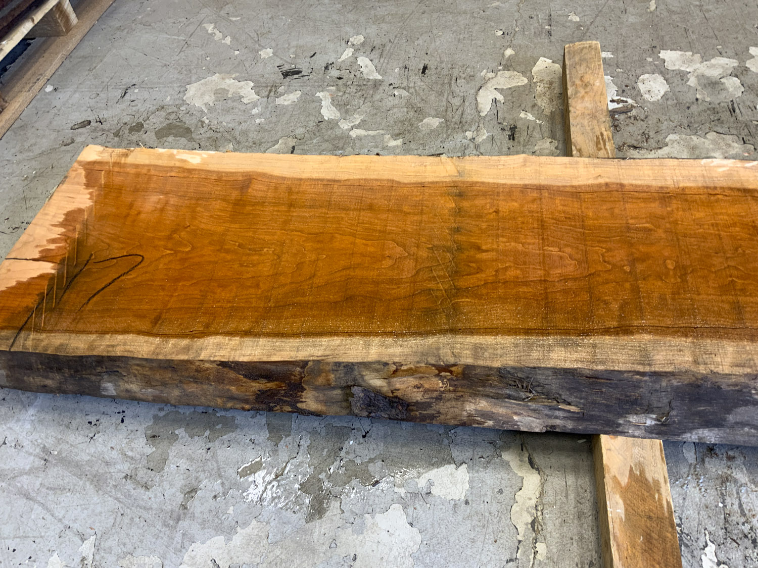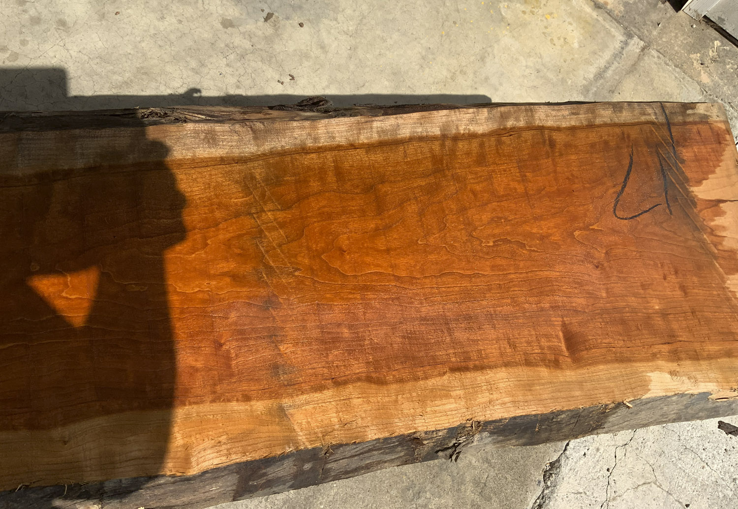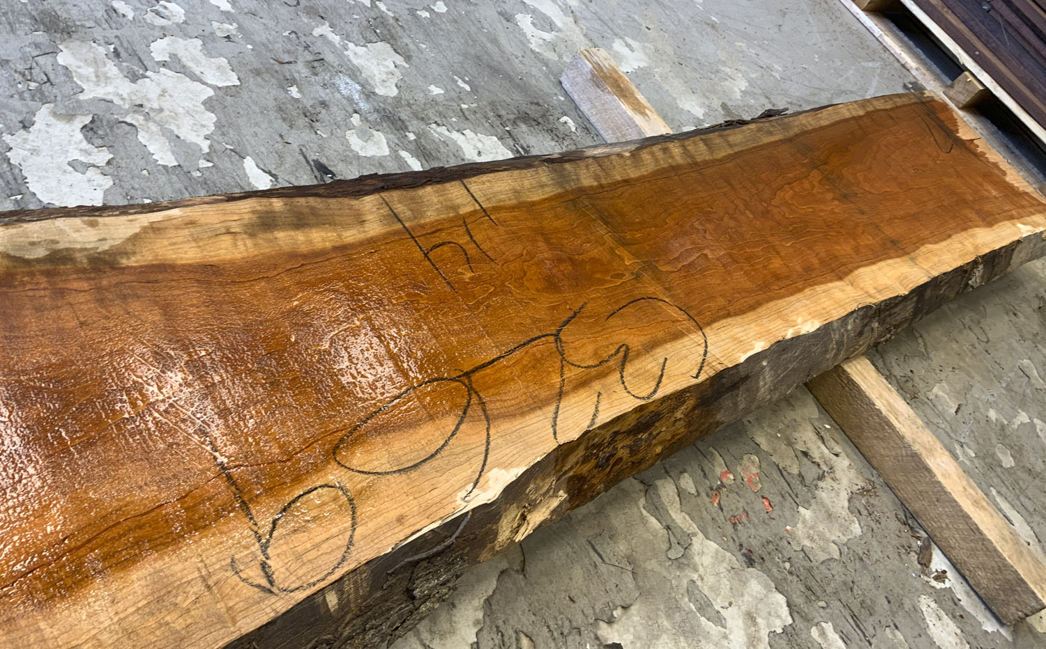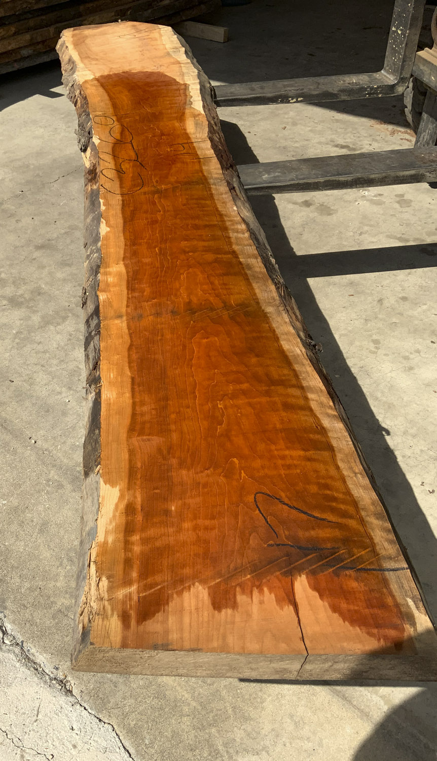 Cherry slab with beautiful figure and color. A twist is present so best if not used at full length. A few end checks otherwise fairly clear.
