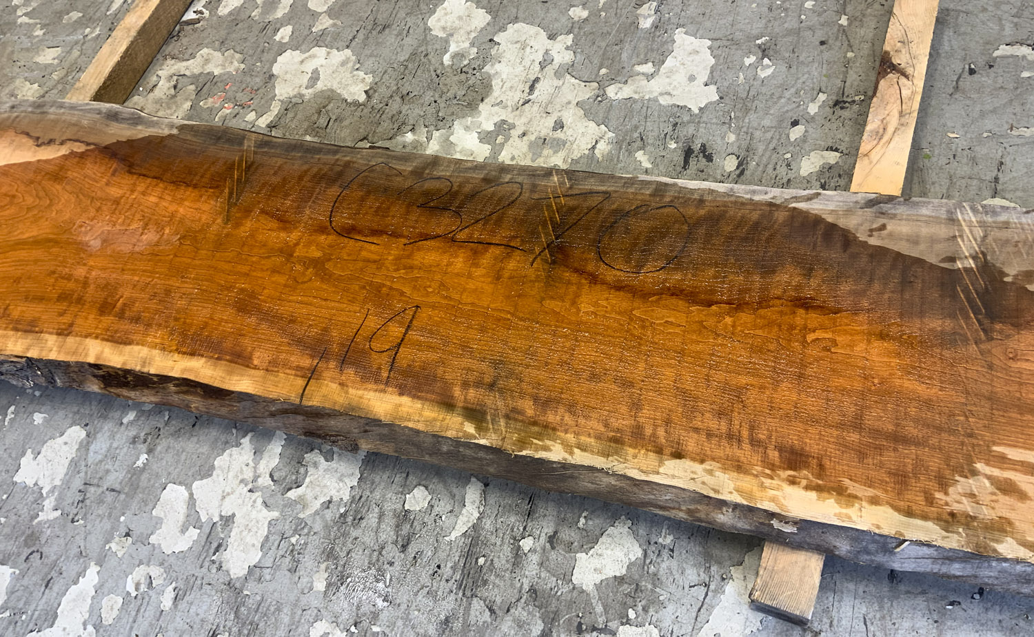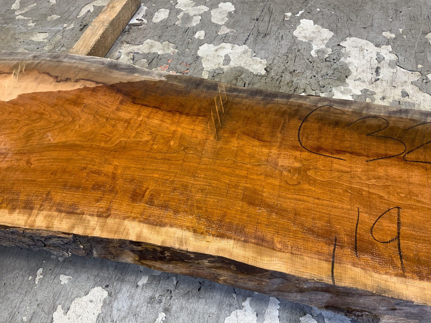 Cherry slab with heavy figure and gorgeous color. Board has a cup and checks.