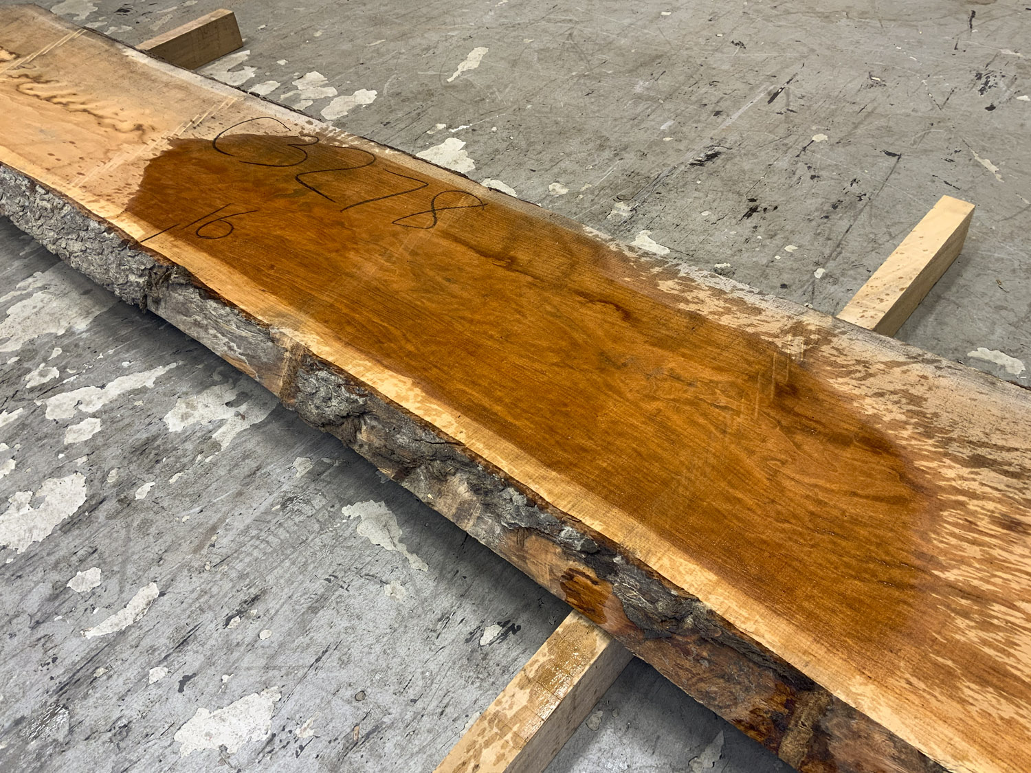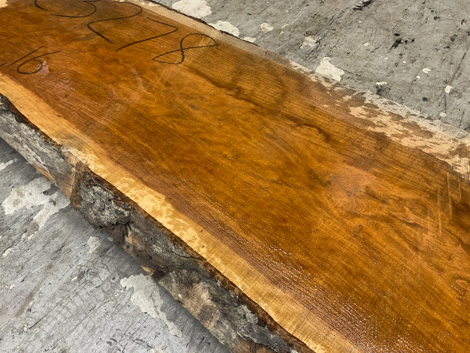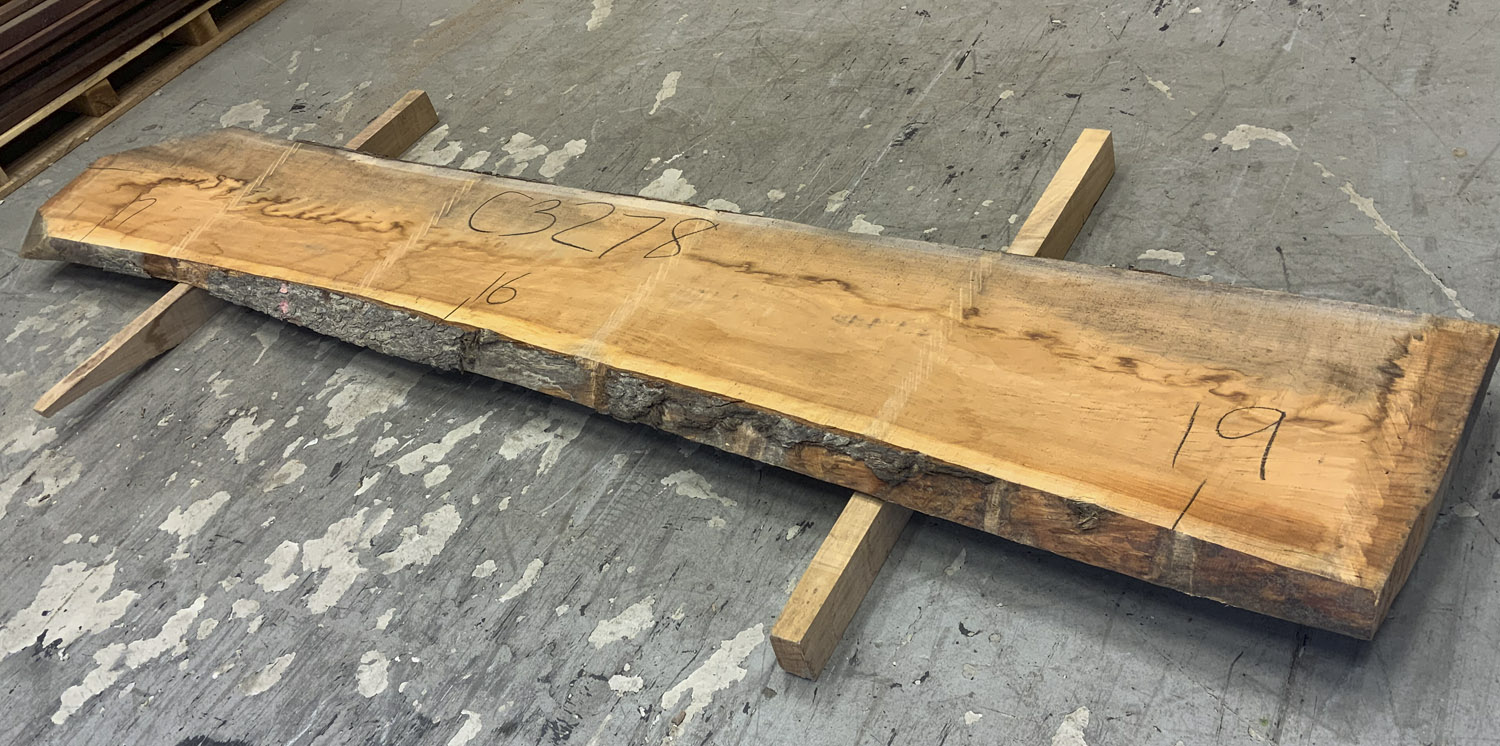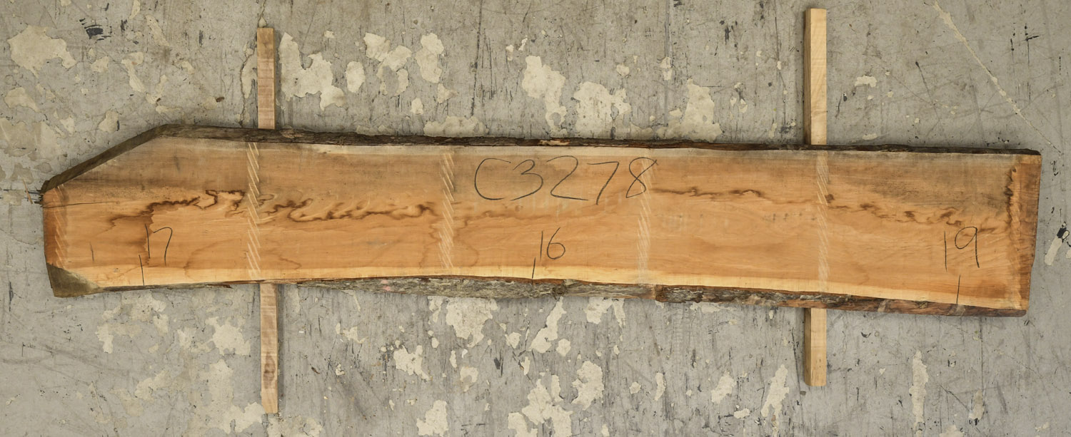 Cherry slab with beautiful color grain and medium curl. Large twist and end checks. Best if not used at full length.