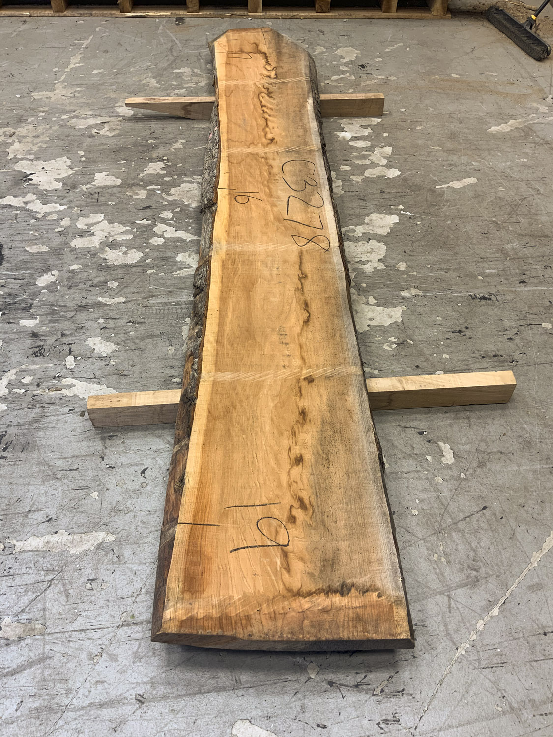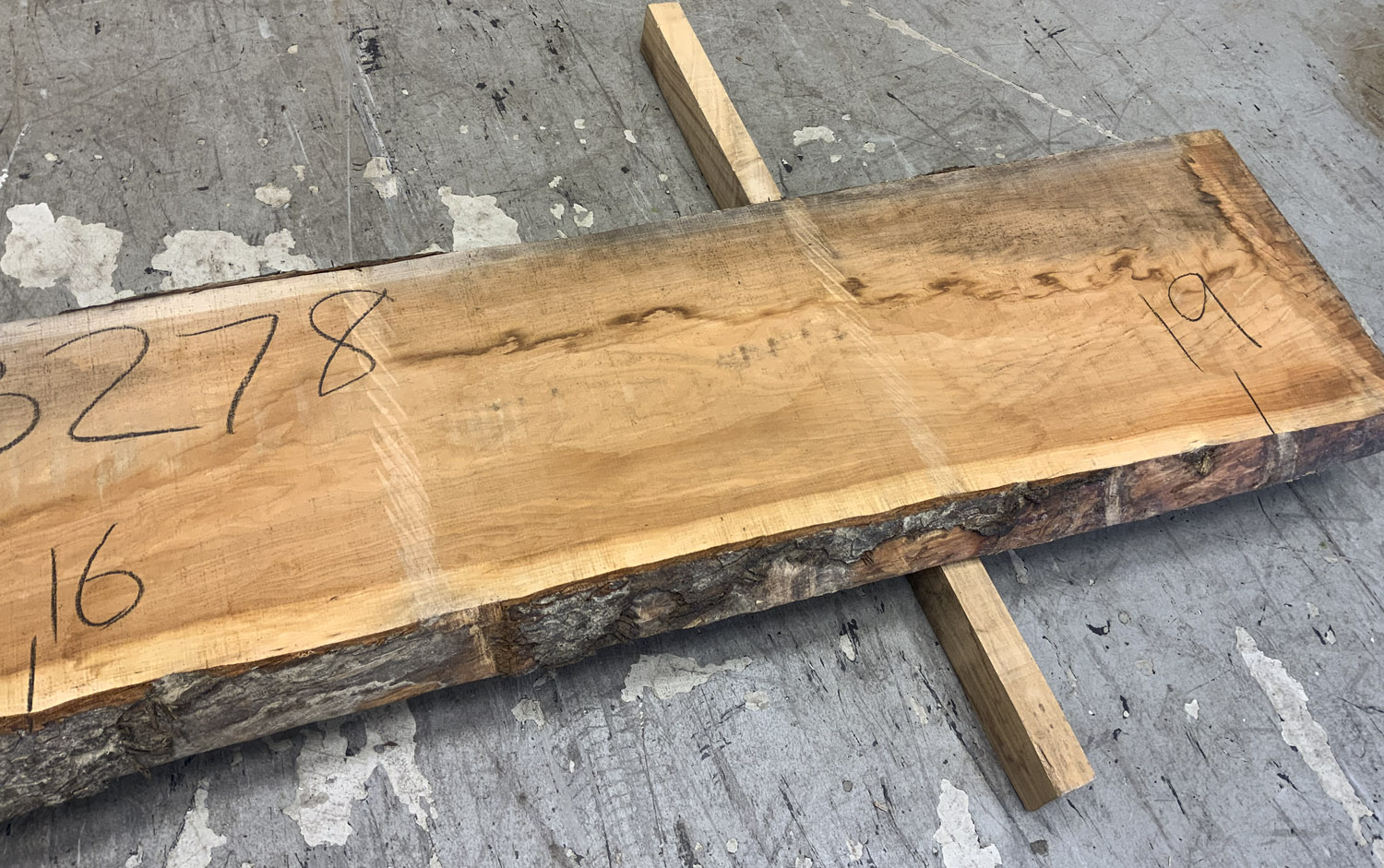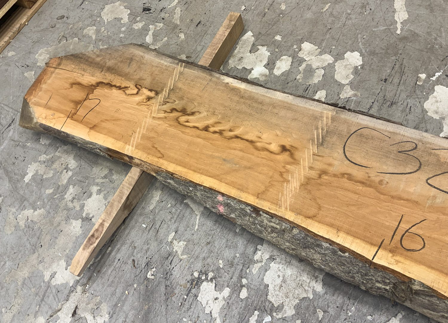 Cherry slab with beautiful color grain and medium curl. Large twist and end checks. Best if not used at full length.