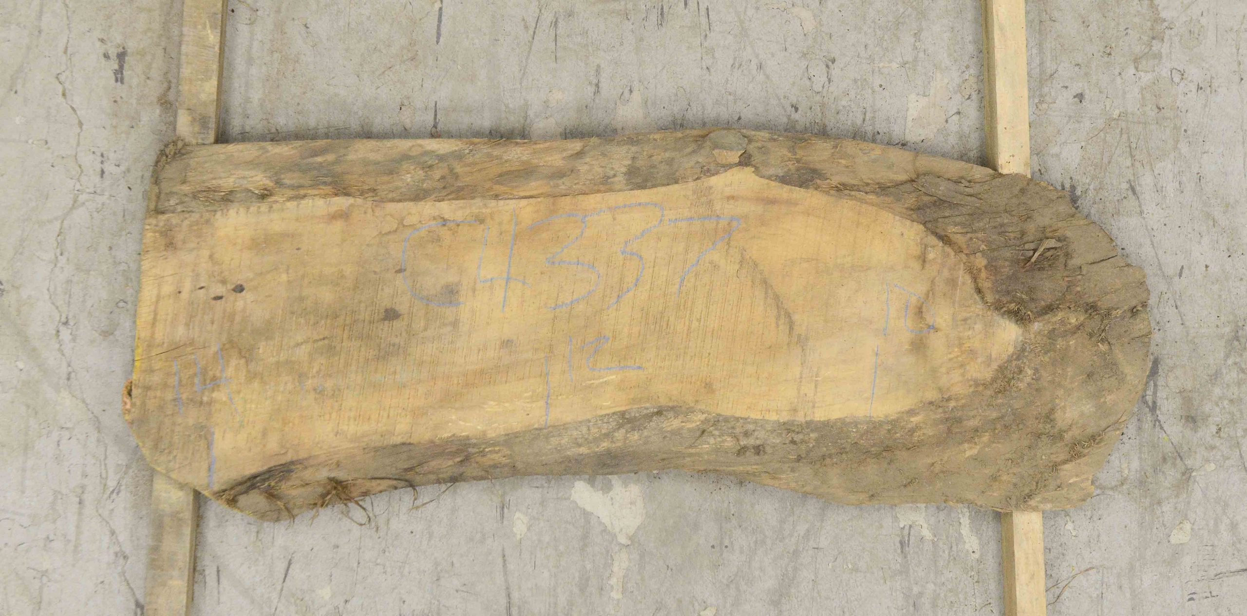 Outside cut. All sap on the primary face 80/20 heart to sap ratio on the secondary face. Beautiful heartwood color. Small end checks and a few wormholes.