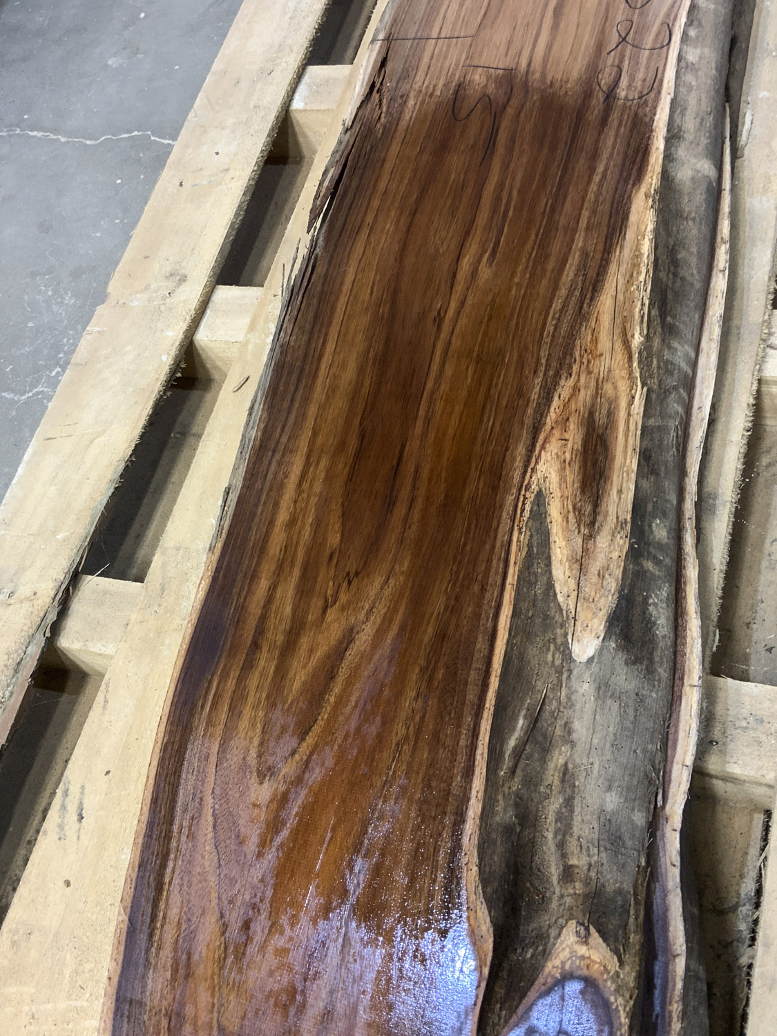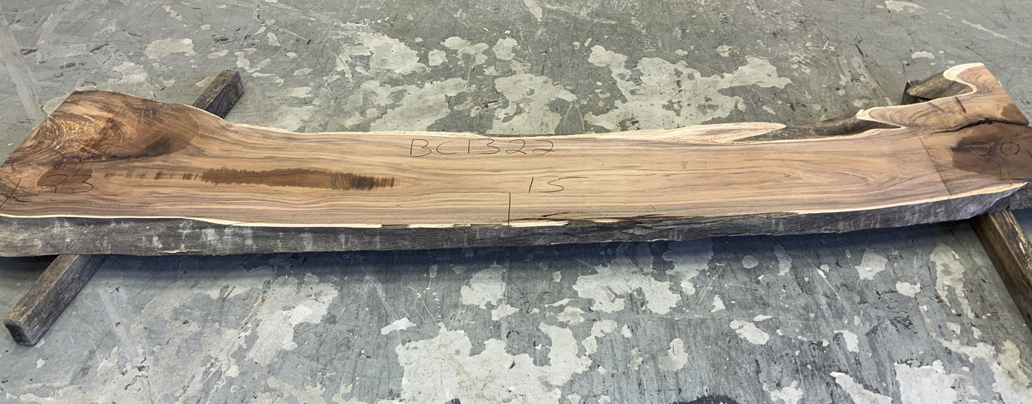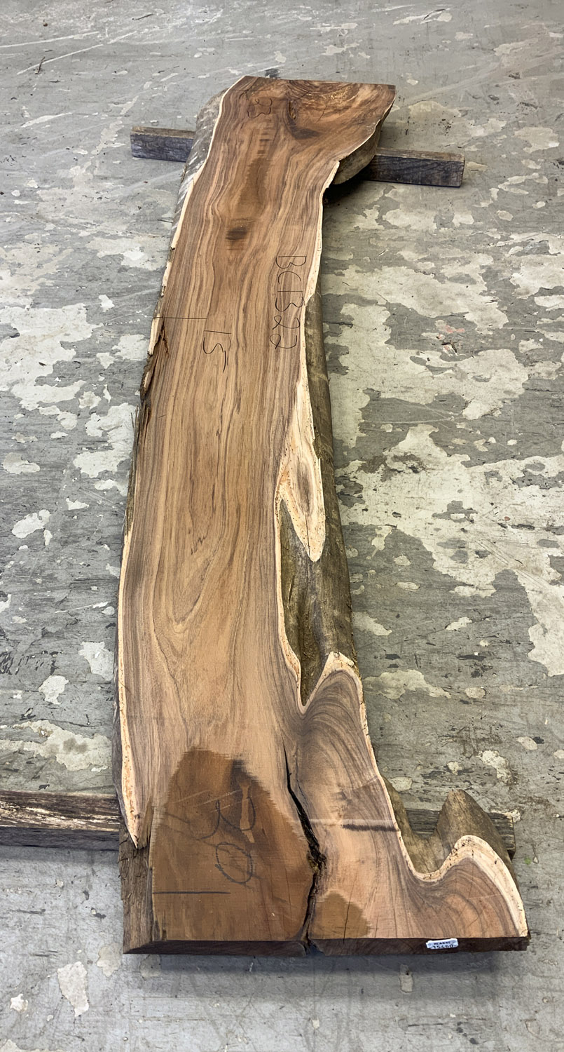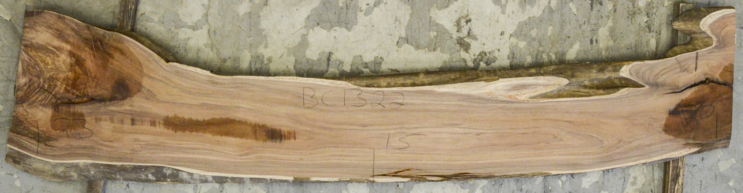 This board has gorgeous color some curly figure in the corner and some worm sprinkled in just for fun. Short deep check in one end. Has been planed on both faces.