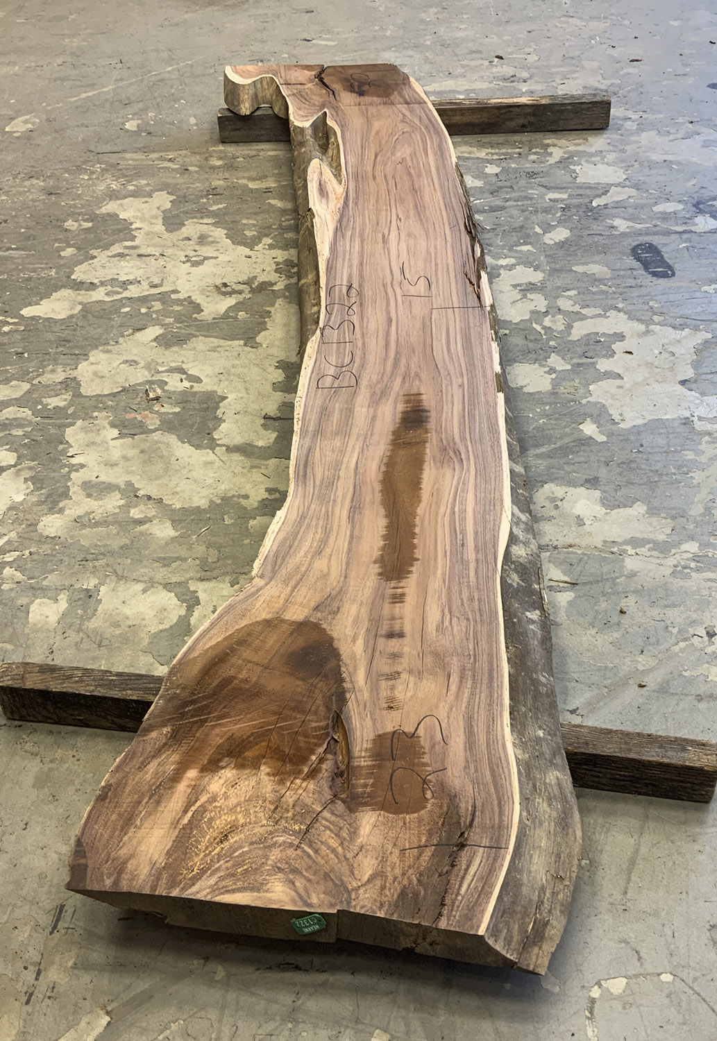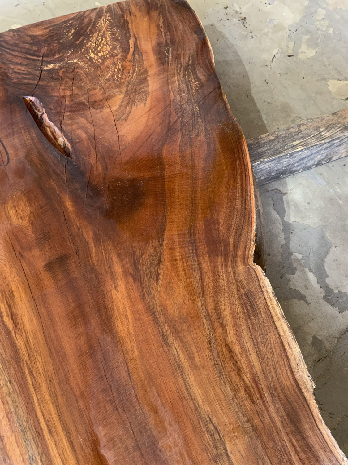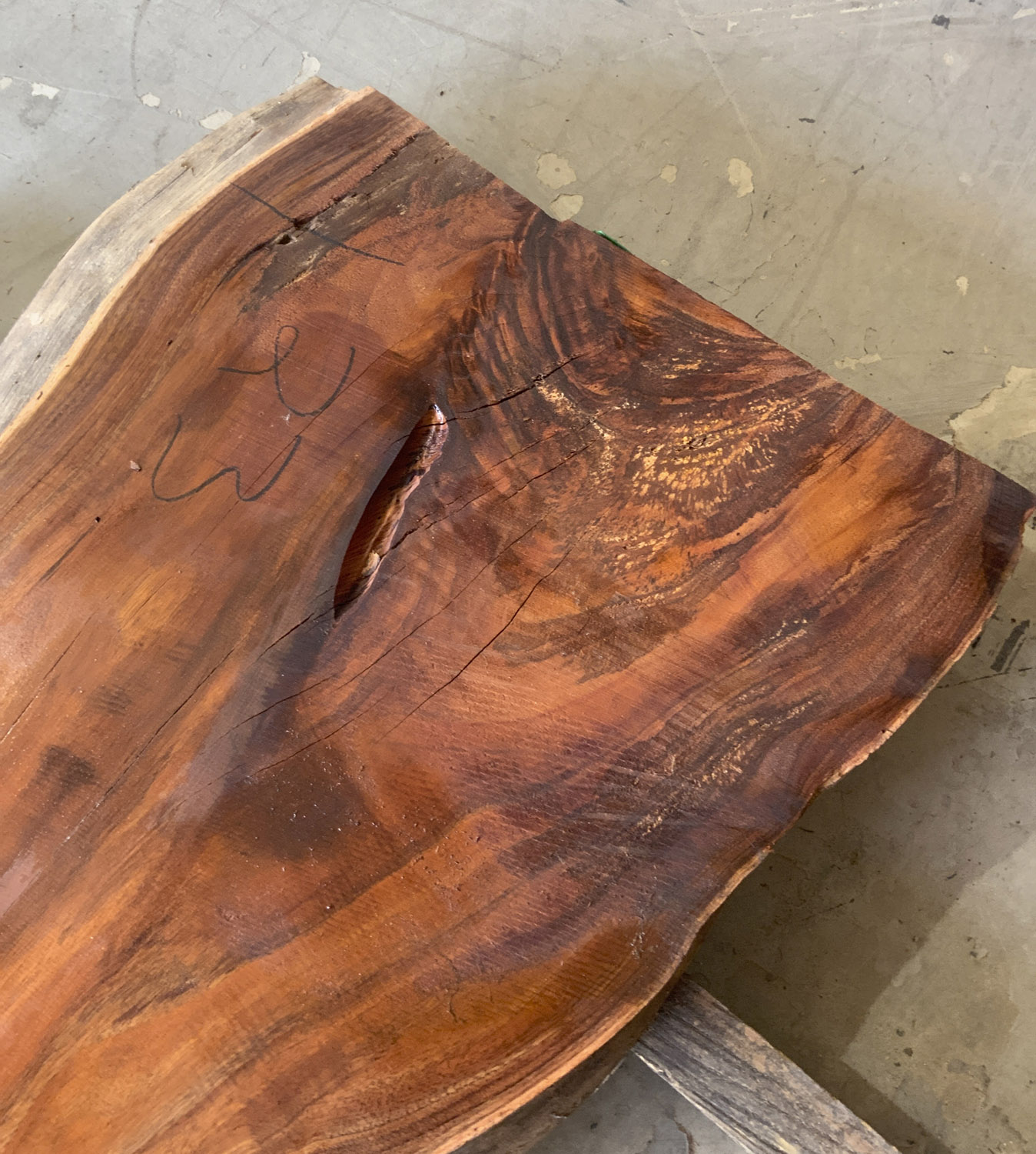 This board has gorgeous color some curly figure in the corner and some worm sprinkled in just for fun. Short deep check in one end. Has been planed on both faces.