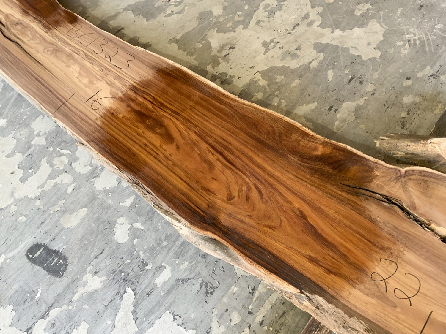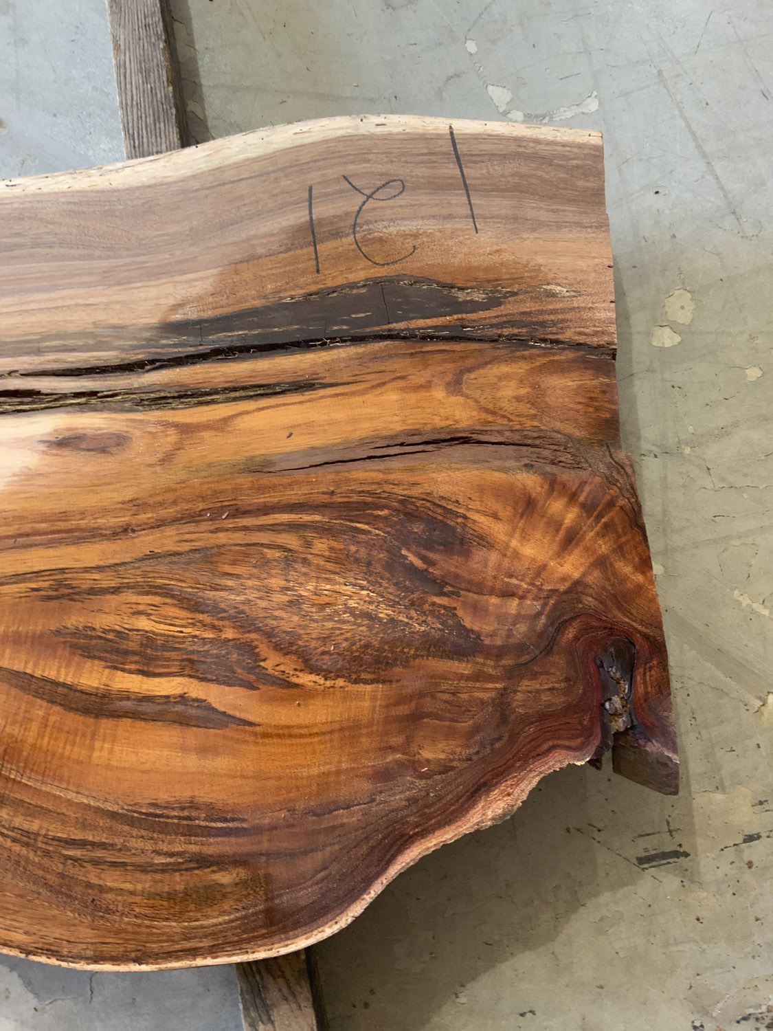 Beautiful color and some curl in the corner. Contains a large check. Has been planed on both faces.