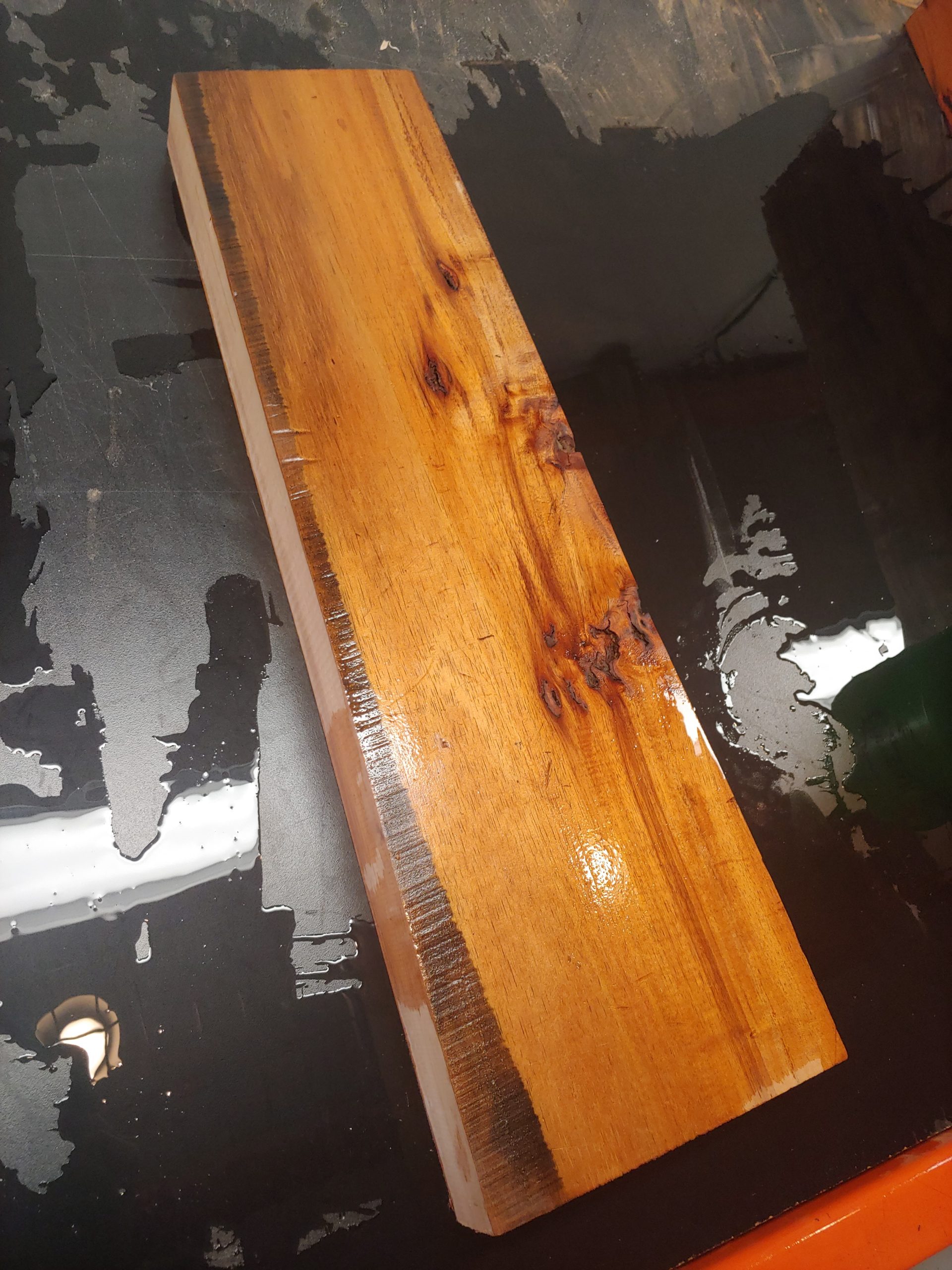 Tapers from 7.5″ to 5.75″. Average width 6.625″. Subtle twist great epoxy fill candidate. Unique piece.