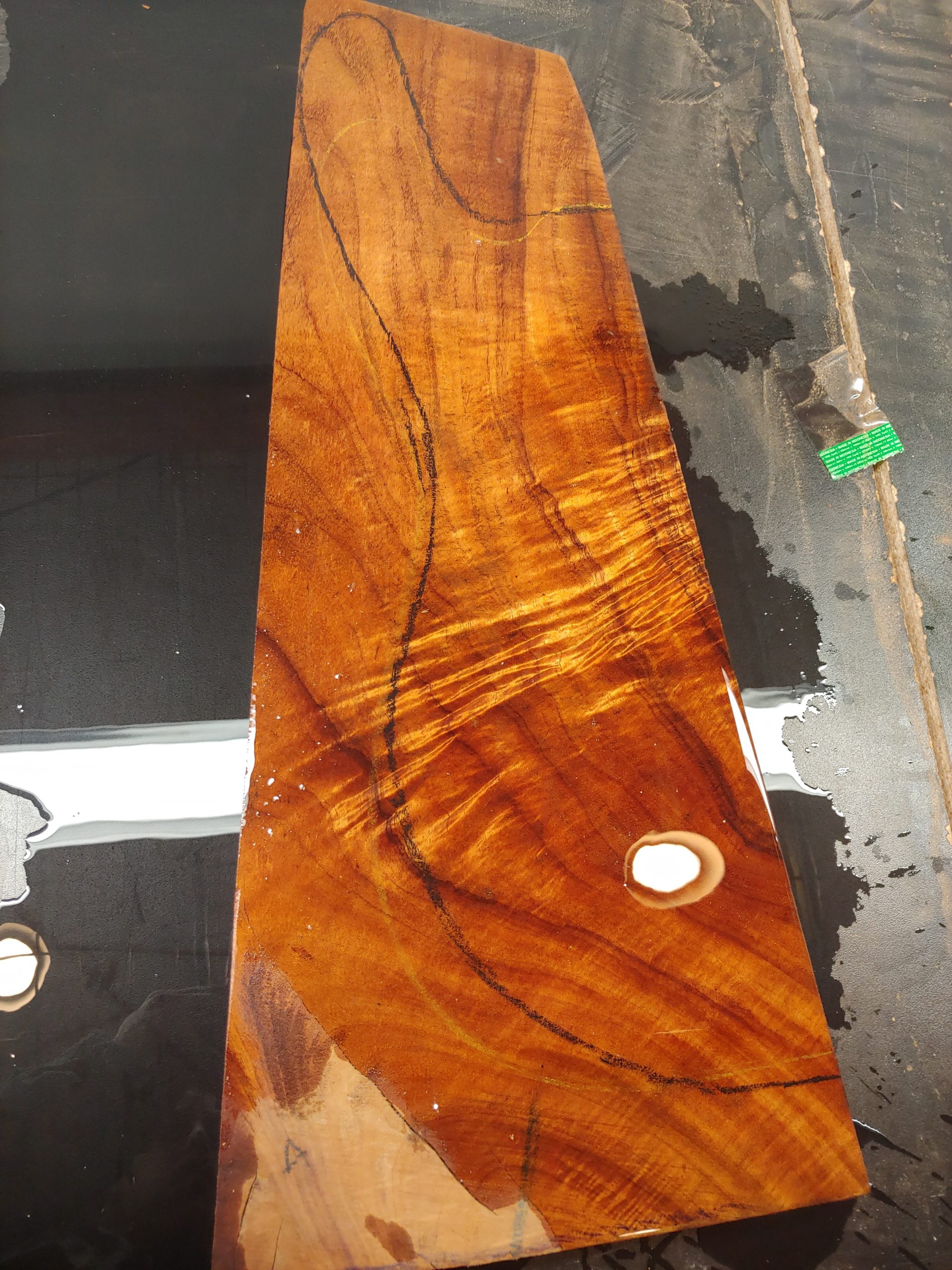 Tapers from 10″ to 5.5″. Average width 7.75″. Nice Compression curl. Slight Checking