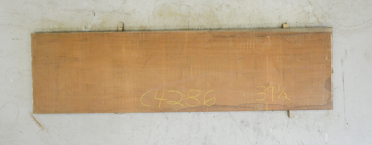 Great mahogany color and grain. Nice wide material. Some edge damage and checking present on ends and in middle of board.