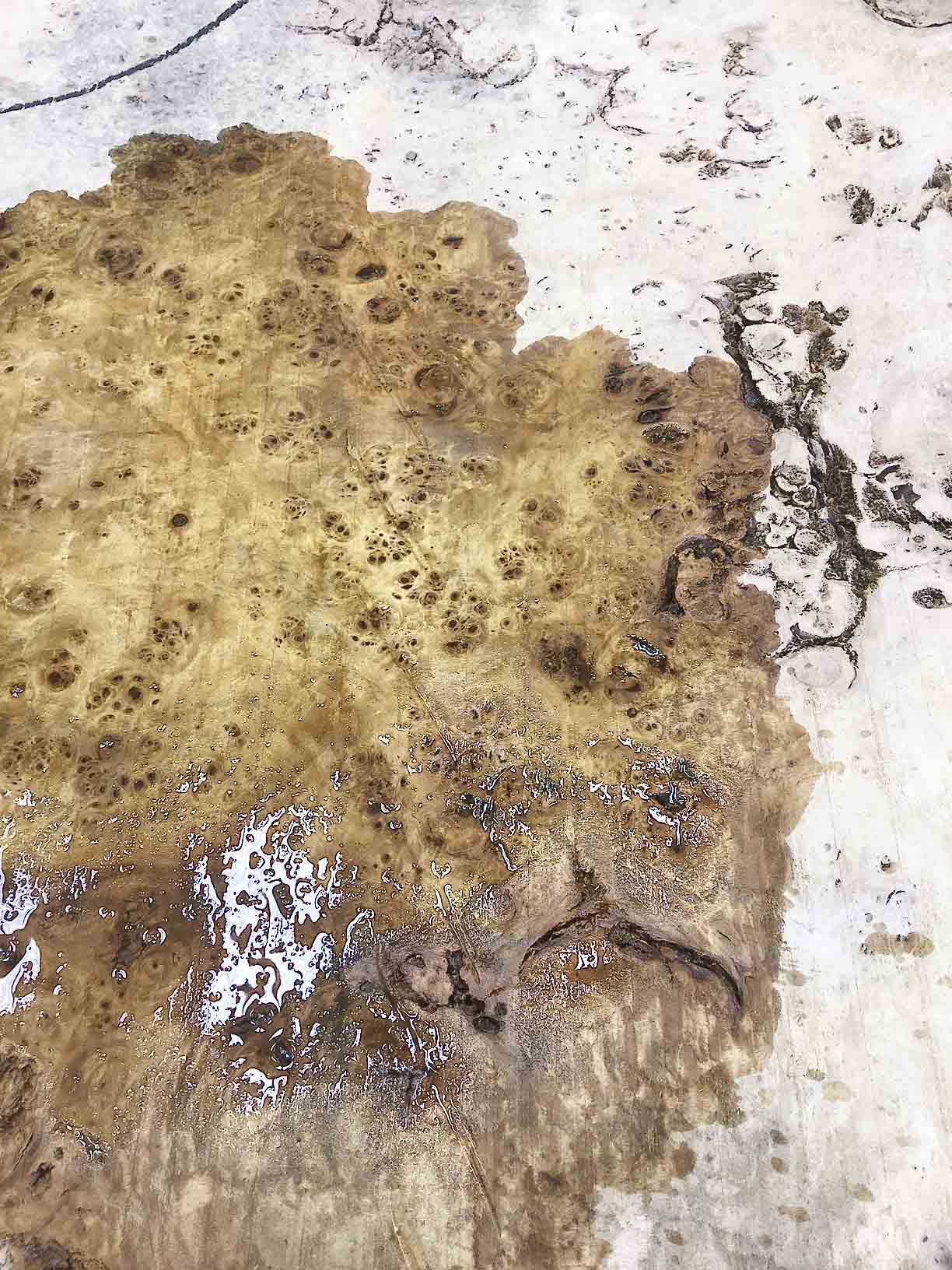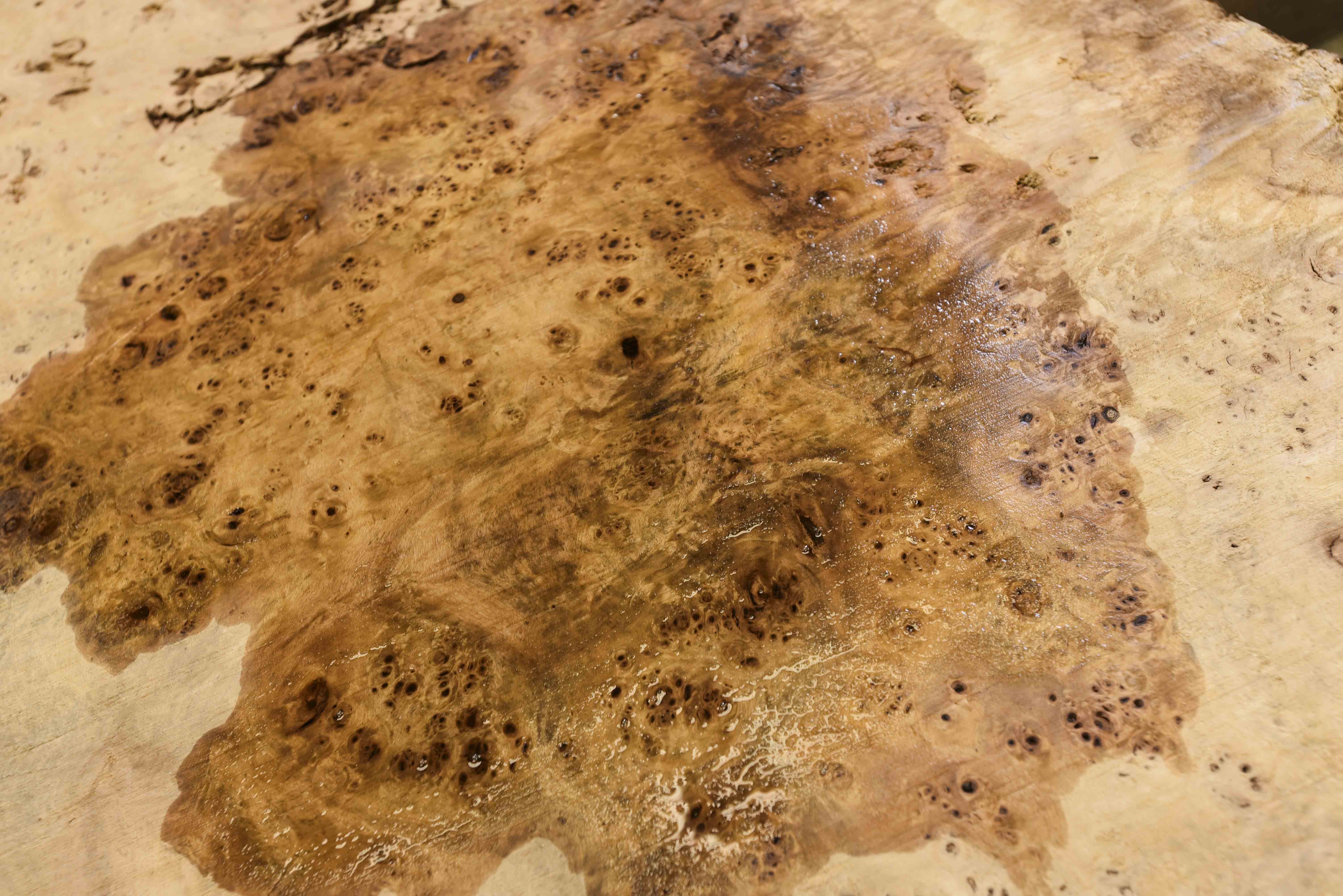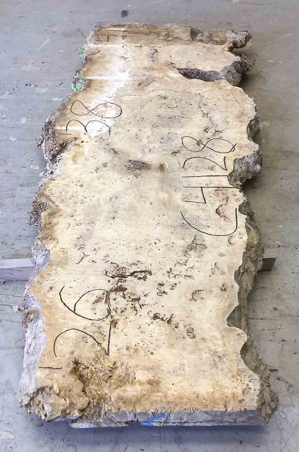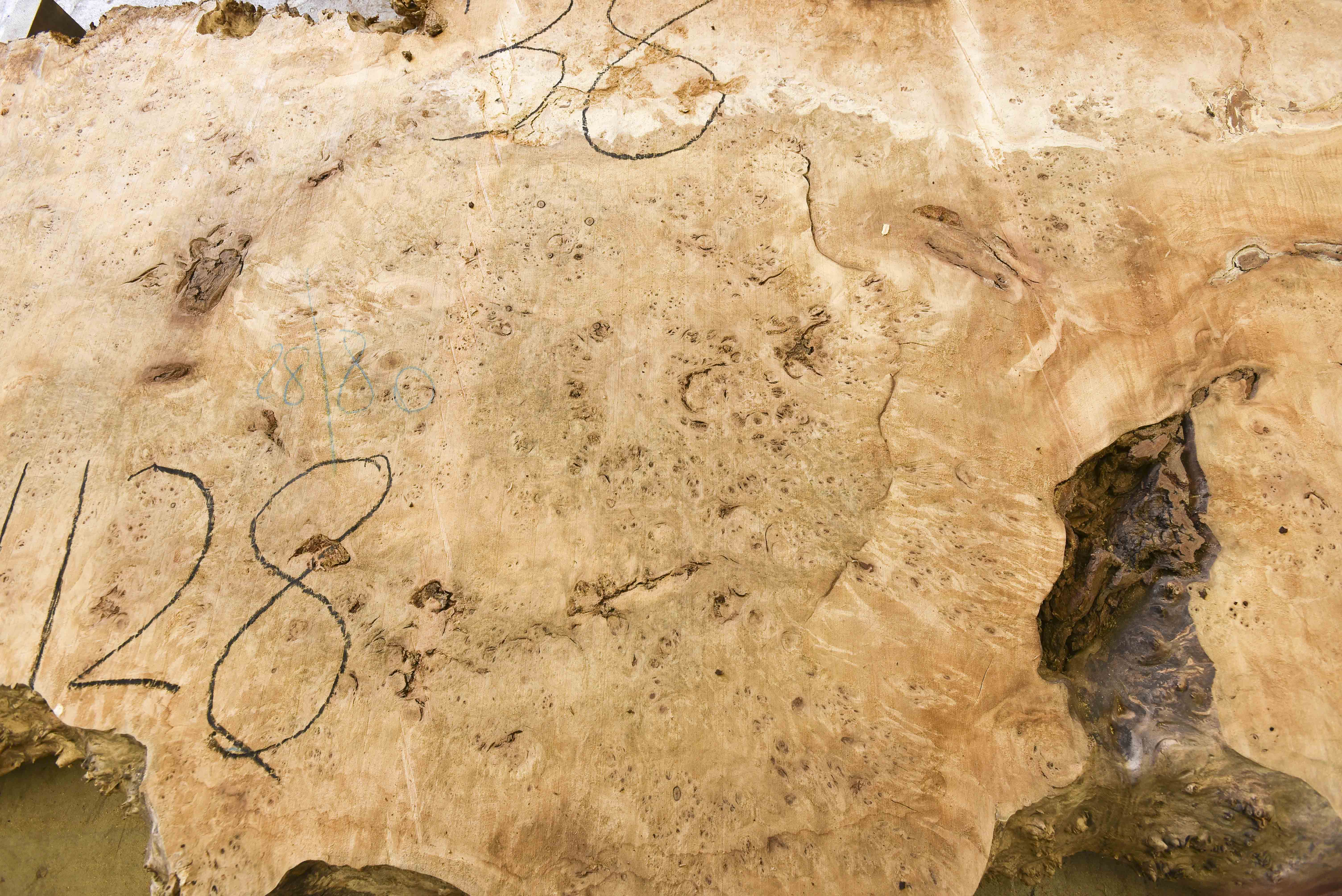 Lovely mappa burl slab! Heavy burl throughout with some compression curl spinkled in spots. Defects (typical of burl pieces): checking knots in-grown bark