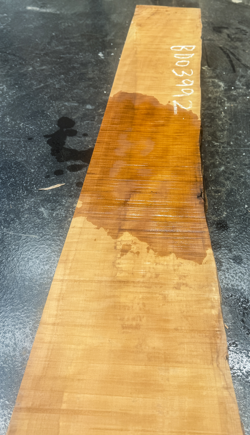 Clear quartersawn board with light curly figure and beautiful even color. Very flat.