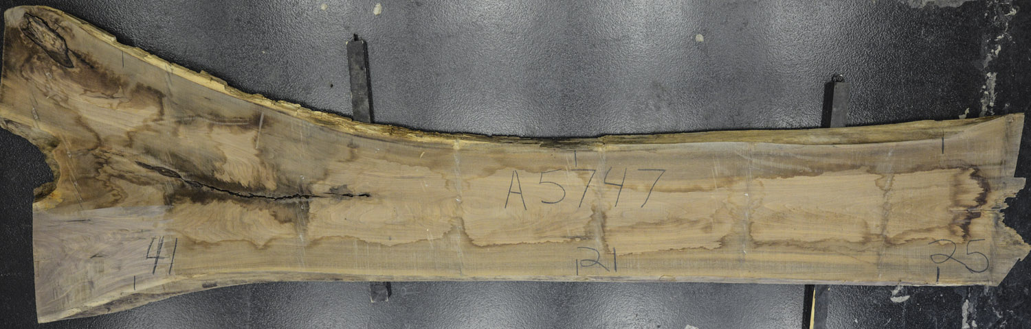 Great wide live edge slab with some crotch figure at one end. It is mostly clear of defects with the exception of a crack with bark inclusion at the crotch.