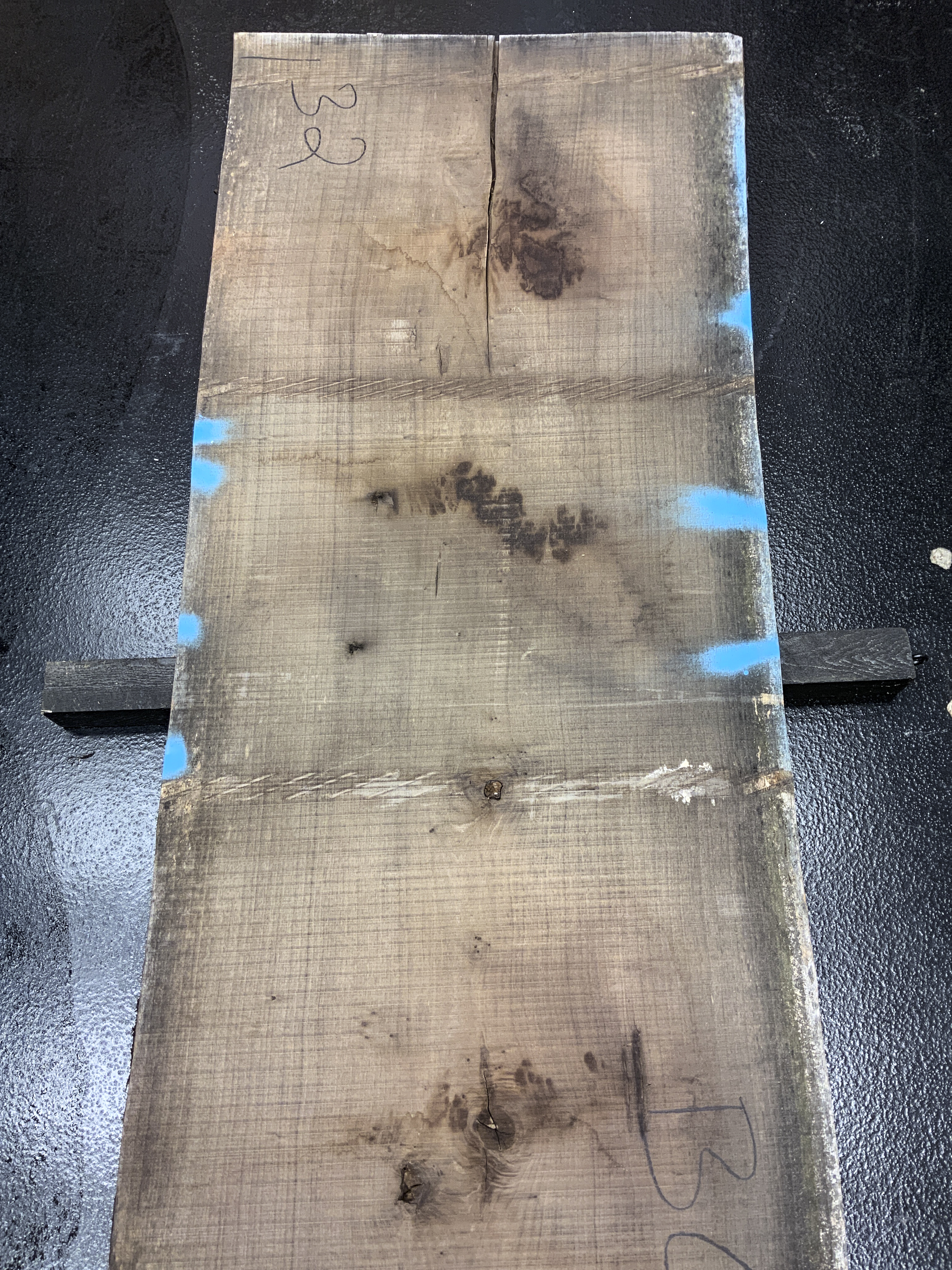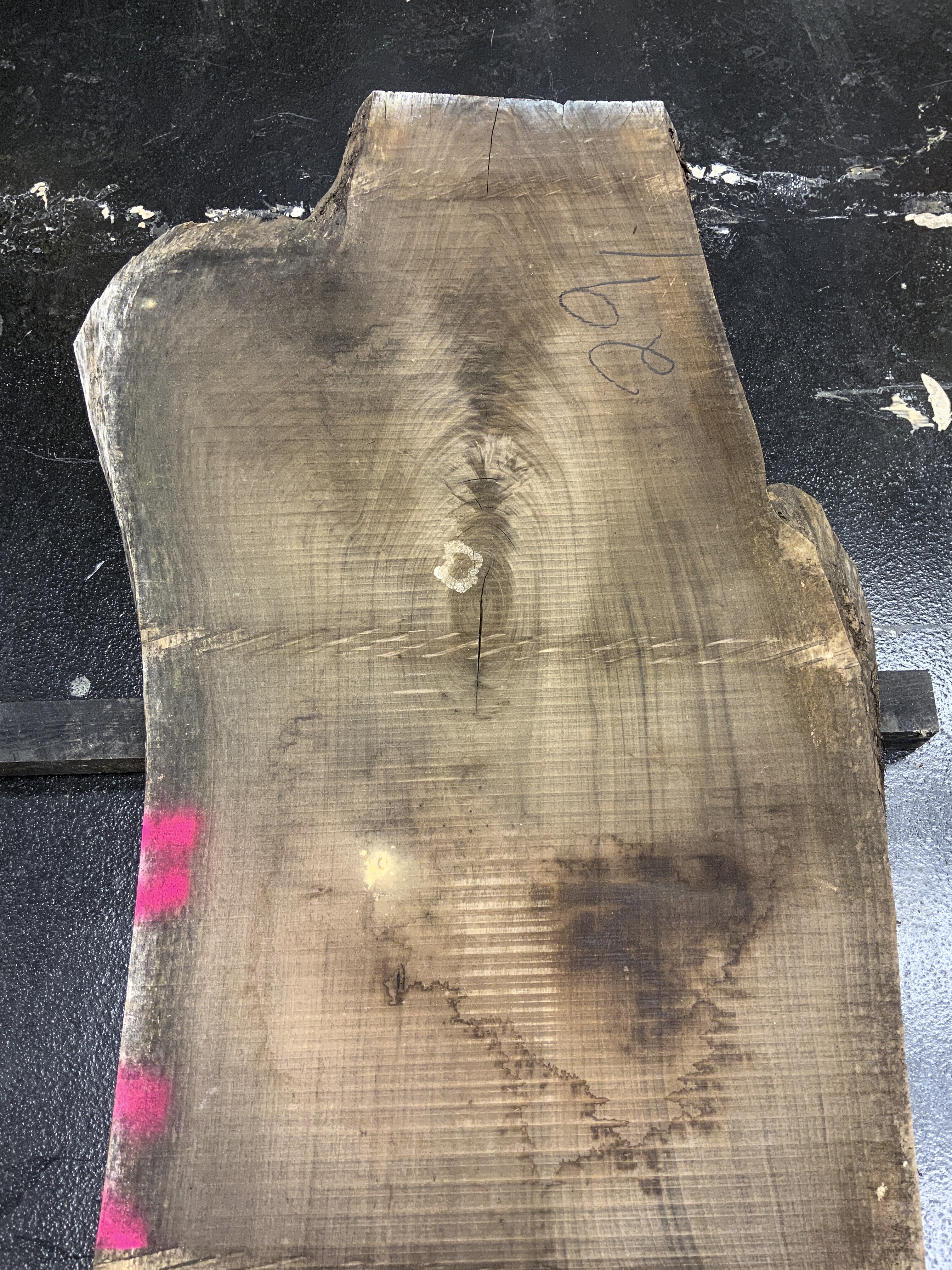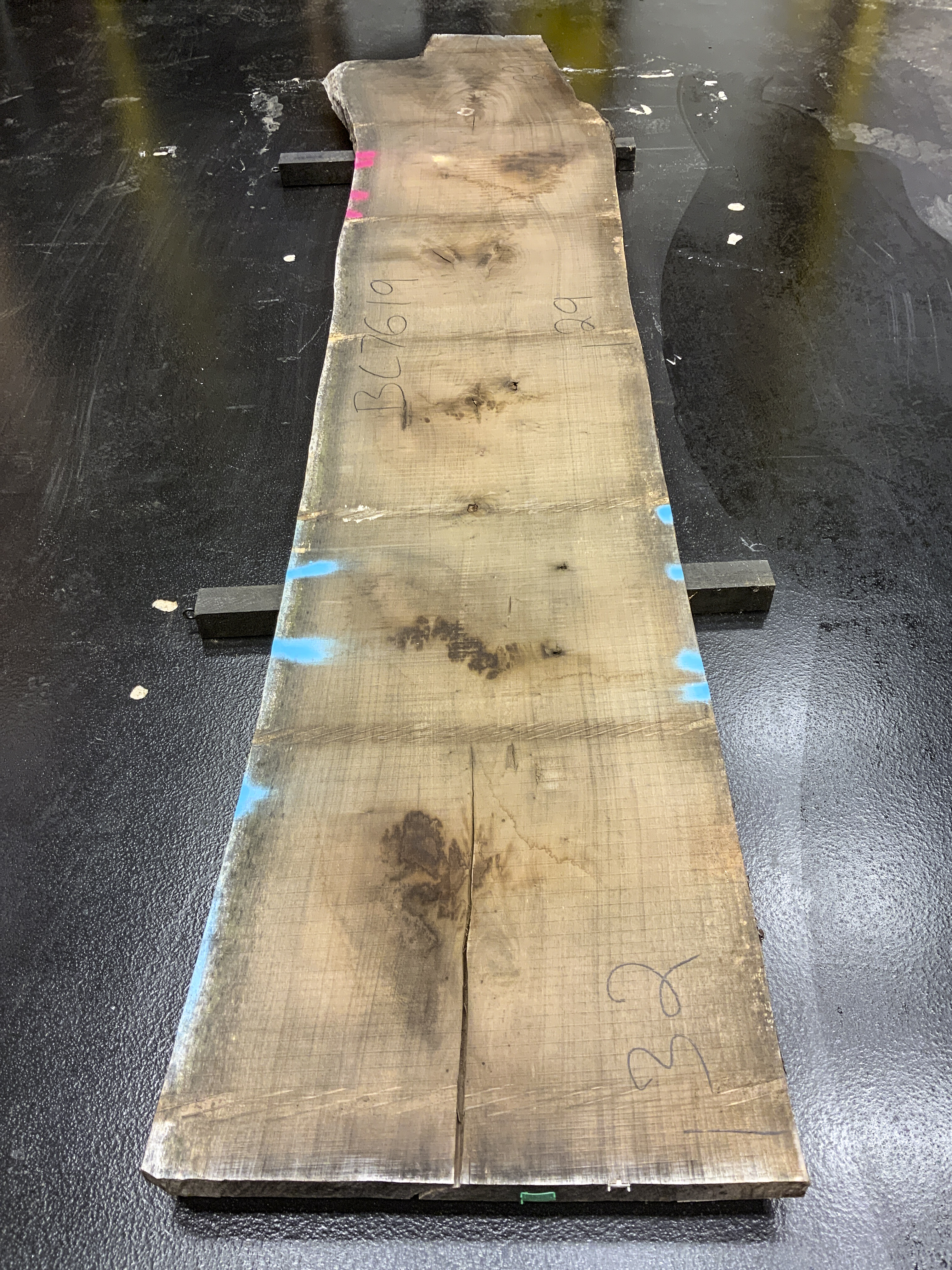 Long Black Walnut slab. Perfect for a bar top/countertop. Minimal defects: End checking and large knots. Has some light curl and crotch figure.